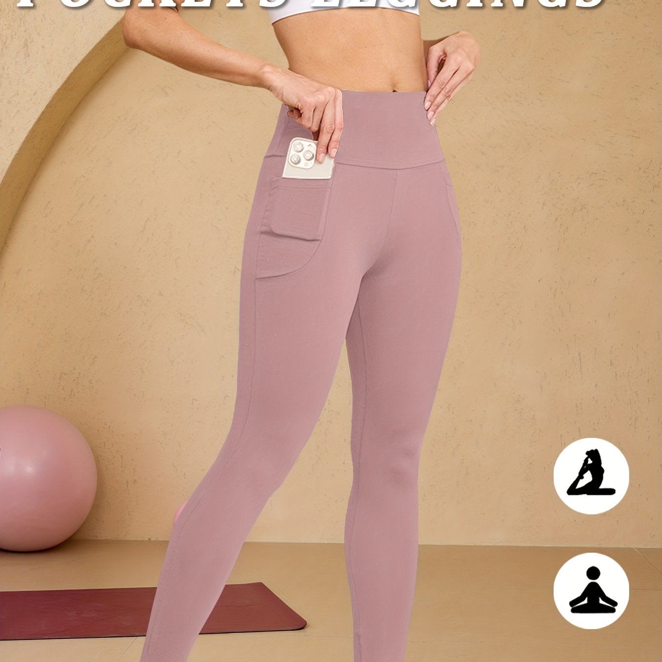 TEMU 여성용 하이웨이스트 단색 포켓 스포츠 레깅스, 슬림핏 신축성 있는 팬츠, 편안하고 통기성 좋은 바지, 스타일리시하고 활용도 높음, 소품 보관이 용이함