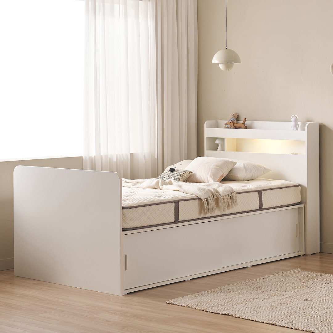 모드 가로 1125 세로 2370 LED조명 슬라이딩 수납 침대프레임(SS)