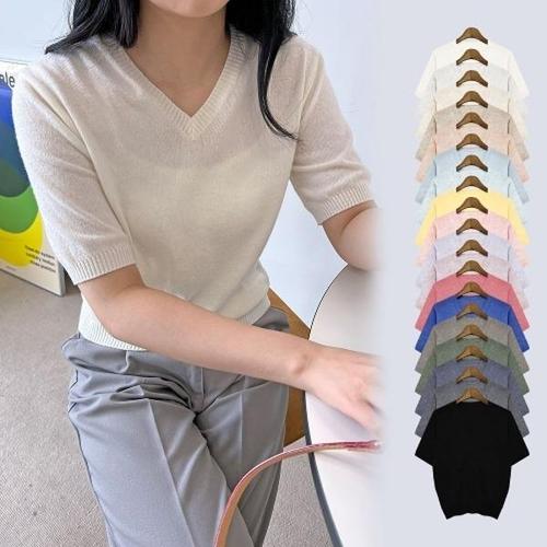[엄지척]루나프 브이넥 캐시 반팔 니트_19805877_667501