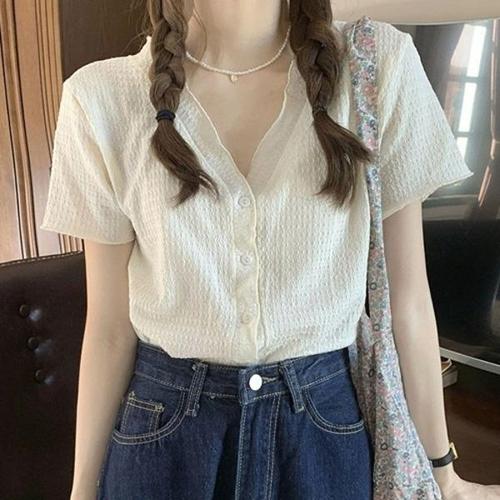 [엄지척]기본 브이넥 숏 여행 데이트 크롭 반필티 러블리 반팔_19679835_667501