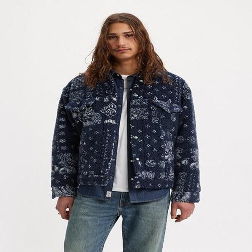 리바이스 남성 트러커 재킷 오션 파이어 블루 블랙 셰르파 미디엄 163650047