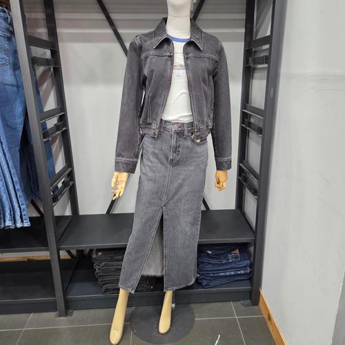 [리바이스]리바이스 여성 칼럼 슬릿 앞트임 데님 스커트 흑청 A7512-0003