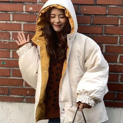 토르 여친 흰색 겨울 구스다운 후드 자켓 숏 다운 리버시블 점퍼 패딩다운 베이직 95 OPH1