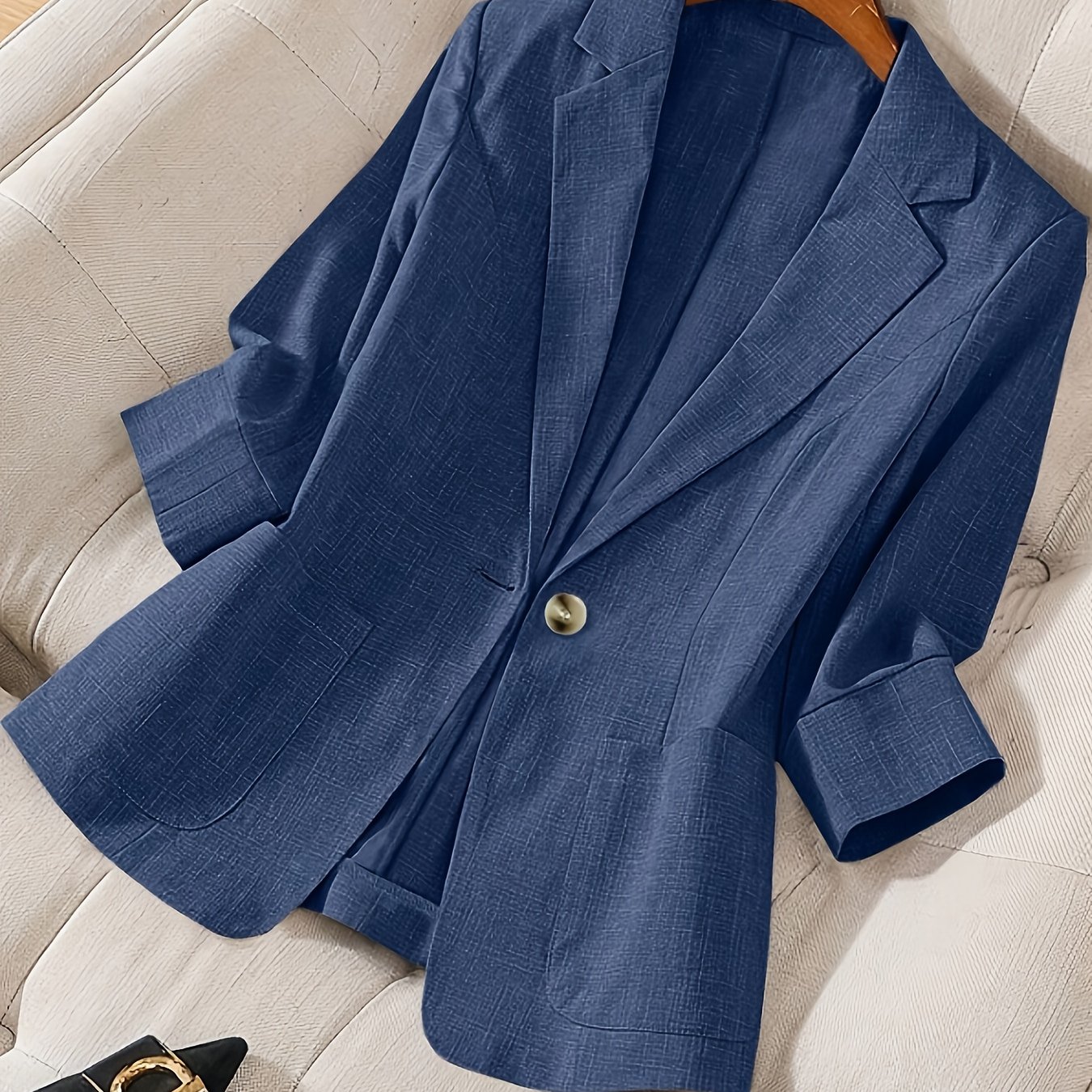 TEMU 플러스 사이즈 - 플러스 사이즈 - 클래식 단색 7부 소매 , 노치 칼라. 허리 주름 디자인. 비즈니스 캐주얼 스타일