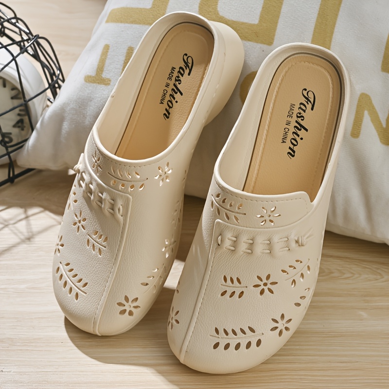 TEMU 여성용 신상 슬립온 신발, 패셔너블 홀로우아웃 플로럴 디자인, 부드럽고 편안한 밑창, 로우힐 캐주얼 슬립온, 가벼운 웨지 힐, 선물, 모임, 파티, 야외 레저에 적합