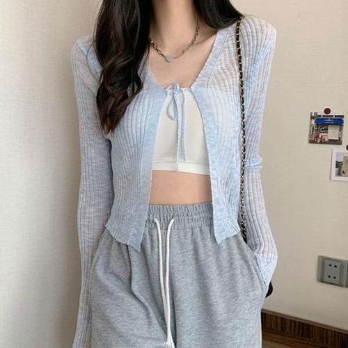 [엄지척]리본끈 매듭 여자 여름 니트웨어 시스루가디건_19801605_667501