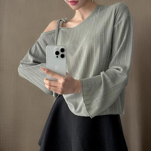 [신상오픈런]원숄더 리본 발레코어 골지 얇은긴팔 여리 노랑 봄니트 (31618217)
