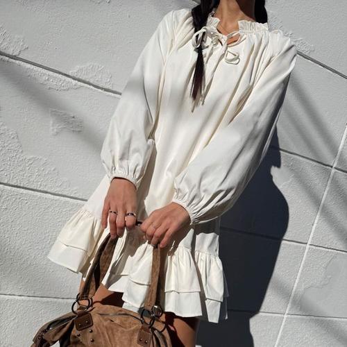 [다잇템]여자 프릴 봄데이트룩 리본 티어드 미니원피스 (45895017)