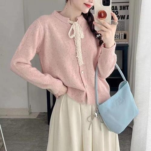 [엄지척]청순 레이스 스트링 리본 타이 여성 긴팔니트_19806340_667501