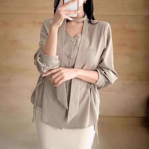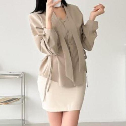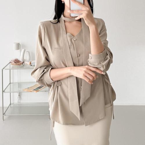 [다잇템]여자 페미닌 타이넥 사이드리본 블라우스