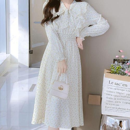 [오너클랜]인기상품 쉬폰 플라워 리본 프릴 긴팔 여성용 원피스 드레스 [WFLILQC_260301]