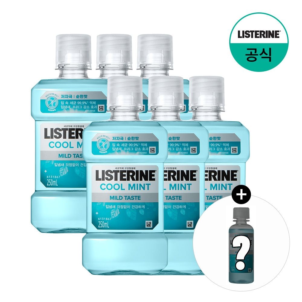 리스테린 쿨민트 마일드 250ml, 6개 + 증정(캐비티케어 마일드 100ml, 1개)