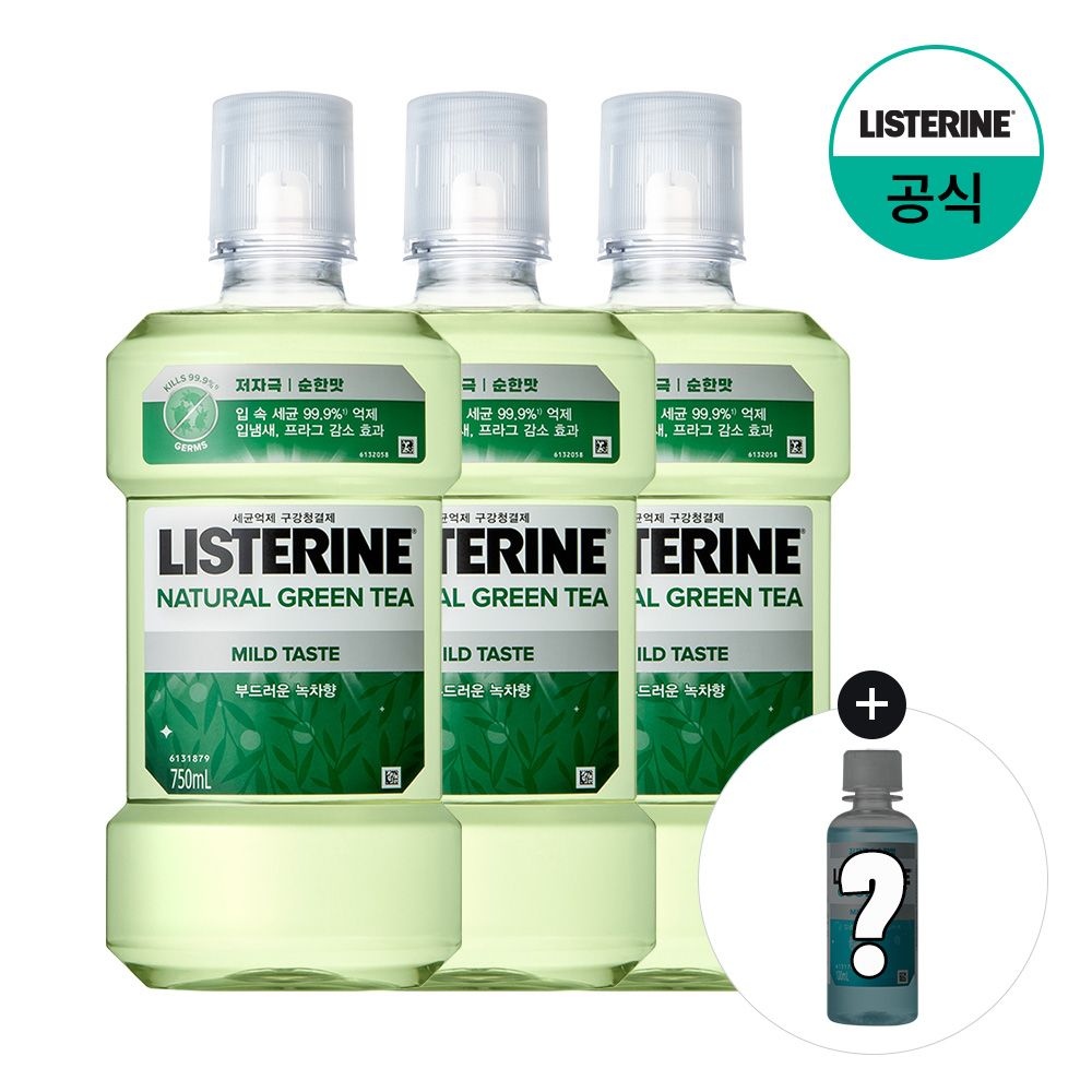 리스테린 그린티 마일드 750ml, 3개 + 증정(그린티 마일드 100ml, 1개)