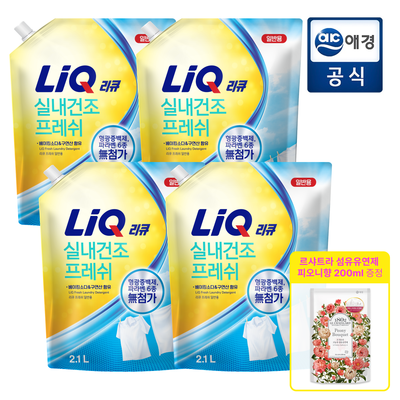 [포토리뷰400P]리큐 프레쉬 실내건조 세탁세제2.1Lx4개(일반/드럼) + 꽃향 유연제 증정