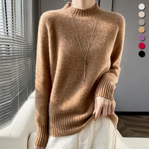 TEMU 여성용 우아한 하이넥 스웨터 - 부드럽고 두꺼운 긴팔 풀오버, 연분홍색, 가을/겨울용 루즈핏, 레이어링 또는 단독 착용에 완벽, 겨울 의류 | 우아한 니트웨어 | 질감