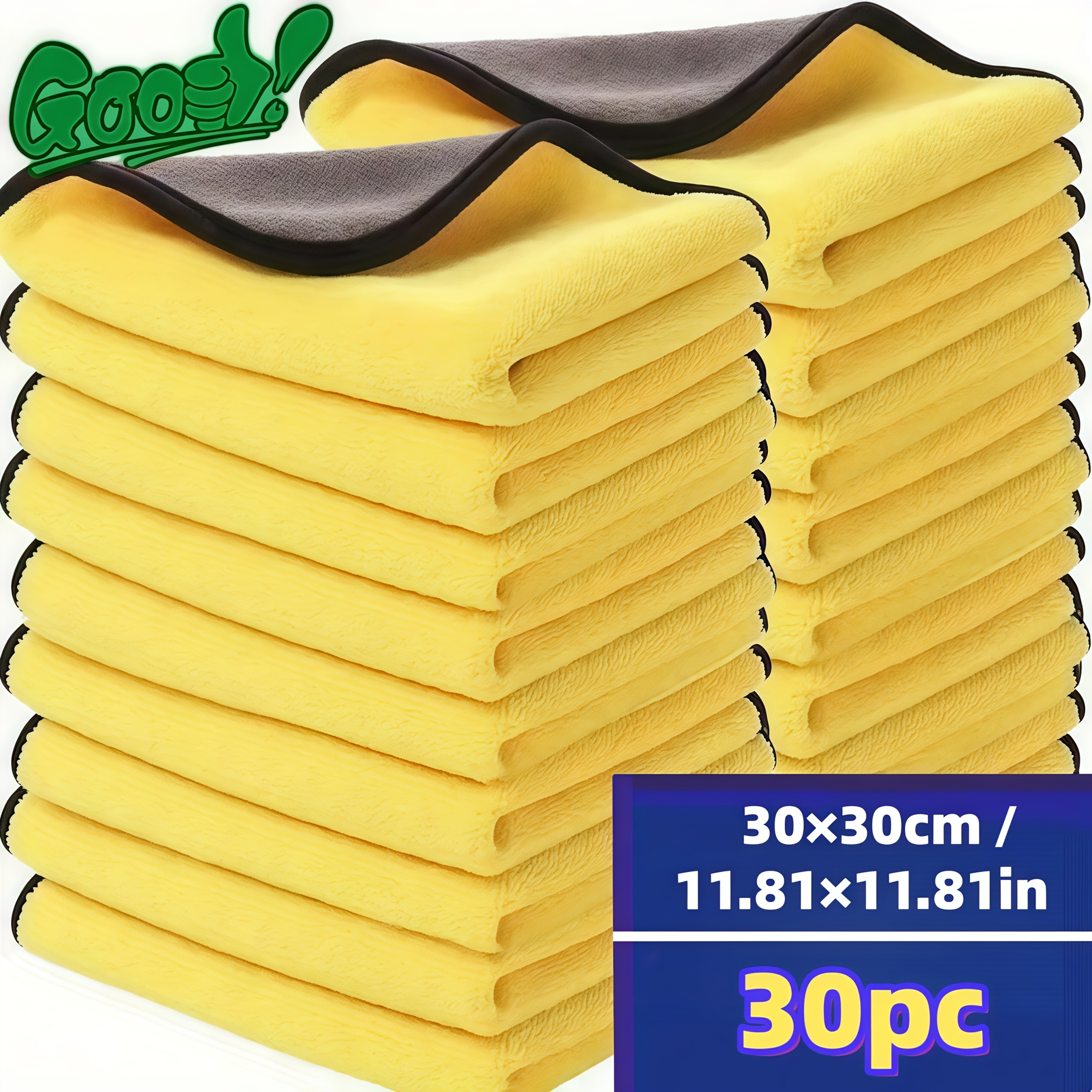 TEMU 30개입 양면 코랄 플리스 마이크로파이버 청소천, 고흡수력 및 재사용 가능한 투톤 디자인 (노랑 & 회색), 사각형 디자인, 가정용, 주방, 차량, 욕실, 유리 세척, 식기 닦이 천, 두꺼운 마이크로파이버 청소천, 자동차 청소, 집안 청소, 양면 타월, 손세탁 가능, 초부드러운 원단, 먼지 제거 천, 다목적 클린징, 가정 필수품