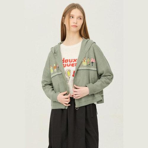 [베네통]린넨 블렌드 자수 후드 니트 가디건_BAKC14511