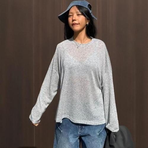 [미라클세븐]라운드넥 홀가먼트니트 미시룩 여성 린넨티셔츠 긴팔