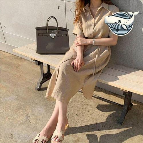 [에이치플러스몰]여성 린넨 셔츠 롱원피스 반팔 데일리