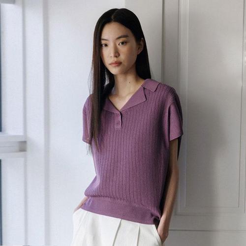 [마리본]여성 린넨블렌디드 크로셰 카라니트-딥퍼플 1종
