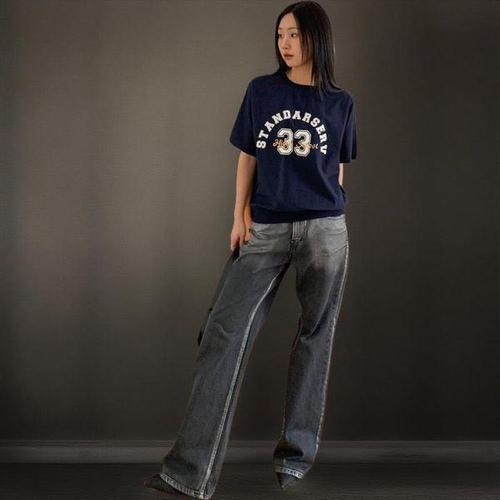 [옷자락] 여성 면 레이온 린넨 레터링 라운드넥 반팔 티셔츠