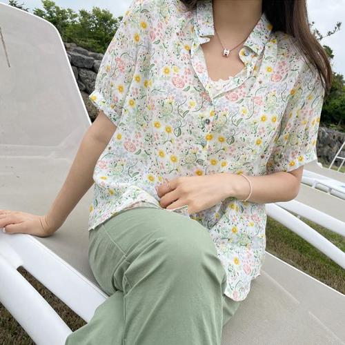 [루시다][루시다] 플레이 플라워 린넨 블라우스