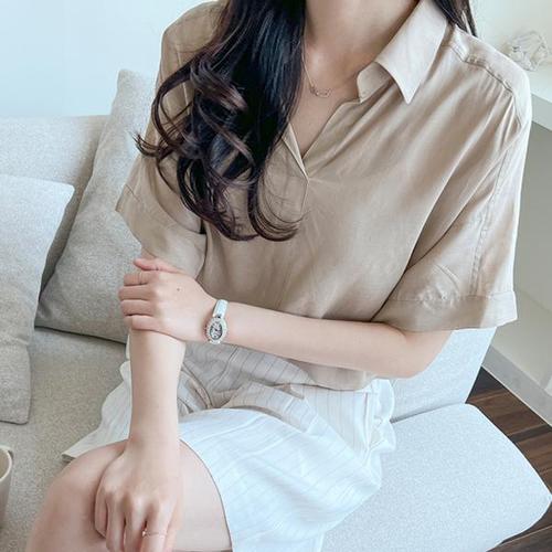 [리우] 여성용 거즈 소프트 크롭 블라우스 간절기 셔츠 4colors