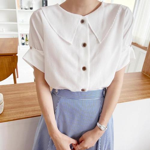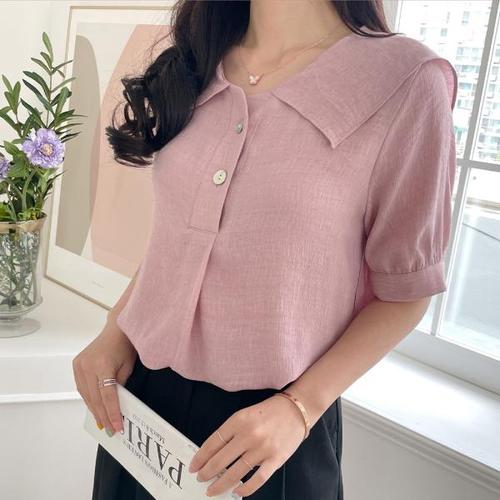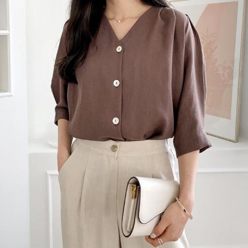 가오리핏 린넨 블라우스 퍼프 브이넥 여름 셔츠