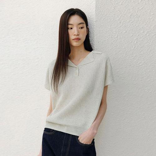 [마리본]여성 린넨블렌디드 크로셰 카라니트-오트밀 1종