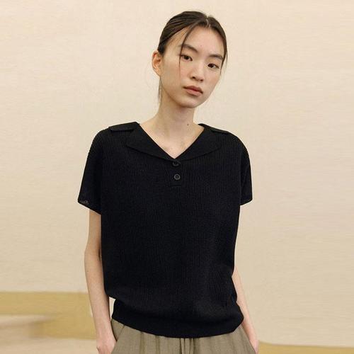[마리본]여성 린넨블렌디드 크로셰 카라니트-블랙 1종