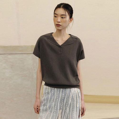 [마리본]여성 린넨블렌디드 크로셰 카라니트-밀크카키 1종