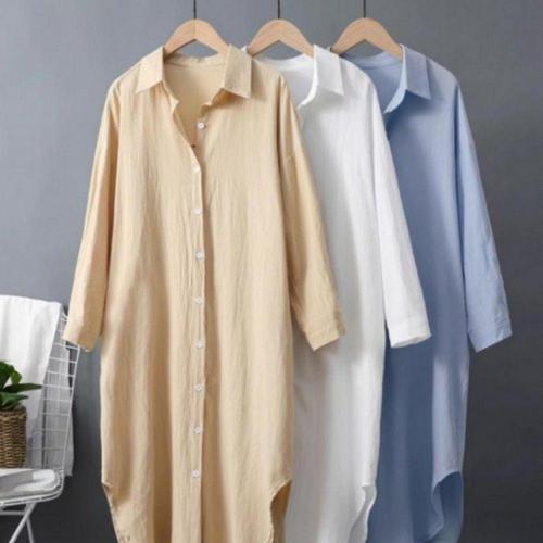 원피스 셔츠 남방 린넨 스타일 오버핏 여름 롱 여자 WFLPTOK