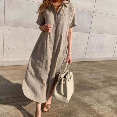 DHH-B107 린넨 반팔 롱 셔츠 원피스