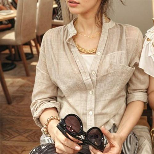 [엄지척]여성 린넨셔츠 블라우스 카라넥 린넨 남방 여름 긴팔_19650924_667501