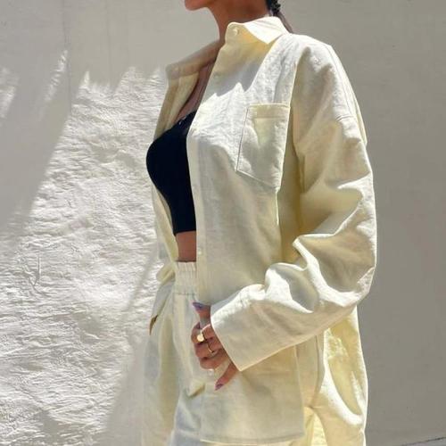 여자 린넨셔츠 주머니 박시핏 반팔셔츠 세트