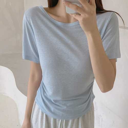 린넨 사이드 셔링 보트넥 반팔티셔츠 찰랑찰랑 여름