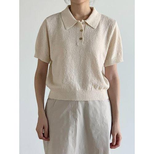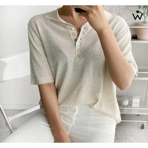 [위시드]모던 베이직 카라넥 버튼업 린넨 반팔 니트 (WIBANT135)