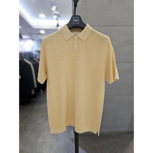 바쏘옴므 세이브존03 바쏘옴므 25 옐로우 린넨 혼방 PK카라 반팔 니트 WSZA