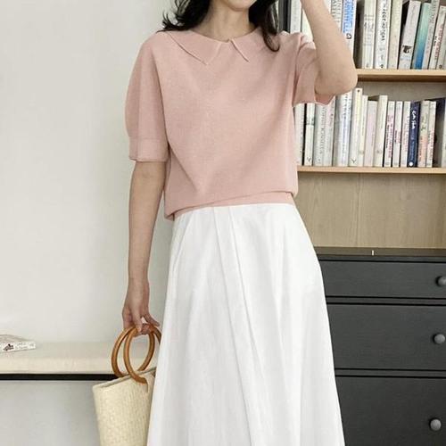 [신상오픈런]이네쿠 러뷰카라 무지 린넨 반팔 니트