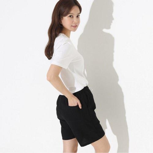 [에이치플러스몰]여자 린넨 5부 고무줄 반바지 1P 여름 바지 팬츠