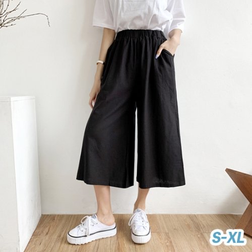[XBG7I2N5]린넨 마 반바지 큐롯팬츠 와이드 3부 밴딩팬츠