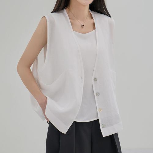 |CSJ6520|여성 여름 시스루 린넨 라운드넥 무지 조끼 커버업