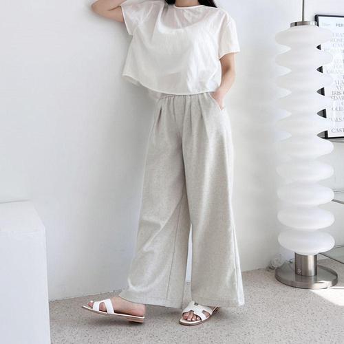 [오너클랜]인기상품 린넨 소재 뒷밴딩 와이드 핀턱 팬츠 통바지 슬랙스 여름 바지 [WFLL99O_260304]