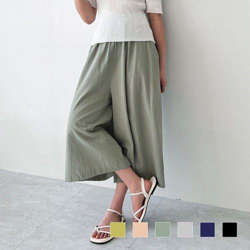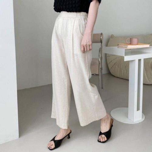 [오너클랜]인기상품 여름용 린넨 세미 와이드 9부 뒷밴딩 바지 슬랙스 [WFLKZ3Y_260304]