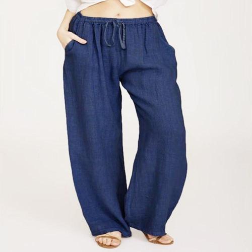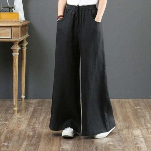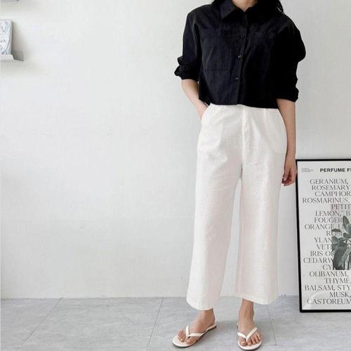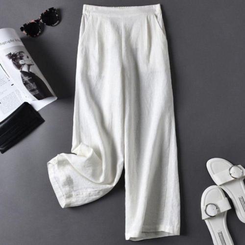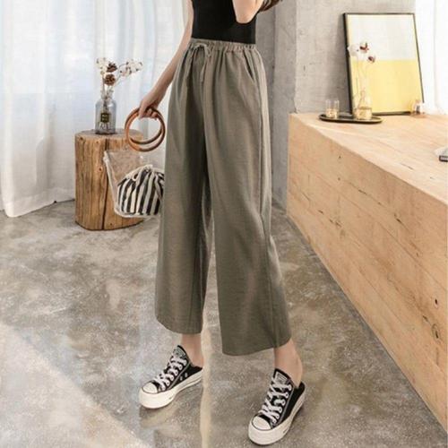 치유쿠 여성 면마 와이드 스트레이트 팬츠 캐주얼 린넨 9부 바지