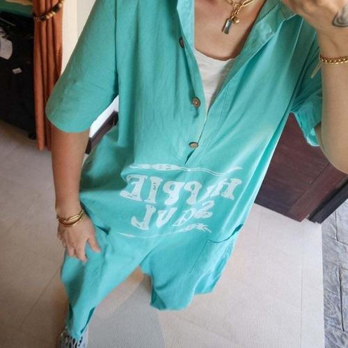 팬츠 면 봄 캐주얼 여자면린넨 스트리트 마 프린트 점프슈트 ible1