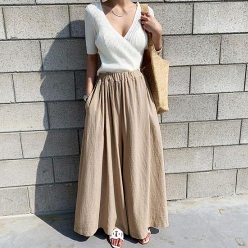 [신상오픈런]여성용 린넨 와이드 팬츠 시원한 데일리 룩 치마바지 (46198743)