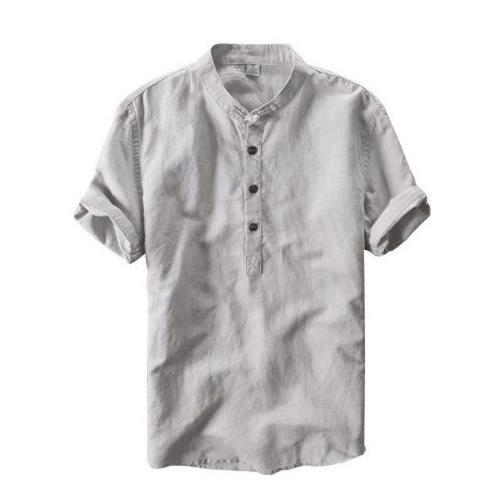 [엄지척]남자 면린넨 반팔티-연그레이 데일리 단추 티셔츠_20458582_667501