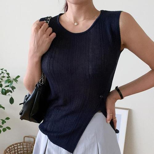 여자 트임 쿨 린넨 라운드넥 심플 나시