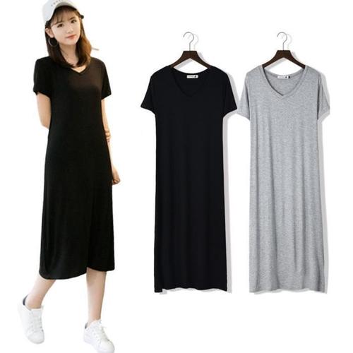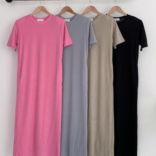 [다잇템]여자 편한 민무늬 반소매 30대 착용감 롱원피스 (11308503A)